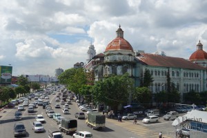 Nach turbulenten Stunden in Bangkok landen wir in Myanmar, in Yangon, der ehemaligen Hauptstadt Myanmars. Nach problemlosen Bargeldbezug am ATM am Flughafen im Yangon halten wir nun unseren Stapel Kyatt in den Händen. Wie kommen wir nun vom 15 km entfernten Flughafen in unser Guesthouse in Downtown?