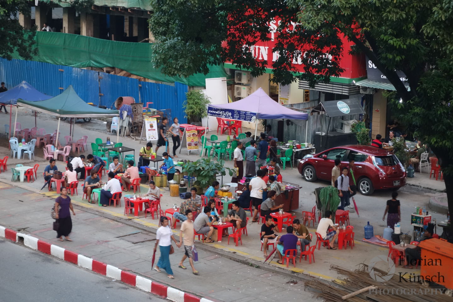 In Yangon sind die Menschen sicher gewohnter, Touristen zu sehen, und trotzdem, die neugierigen und interessierten Blicke begegnen uns an unzähligen Orten. Die Menschen nicken uns zu und das Lächeln in den Gesichtern ist wunderschön. So kommt es auf den Strassen schnell zu einem längeren oder kürzeren Gespräch: So zum Beispiel das freudige aber schüchternde Lächeln des Mannes und seiner Freunde beim Essensstand, bei welchem wir das erste Mal burmesisch Essen; der kleine Junge, der mit uns von der Brücke das Geschehen beobachtet; die Marktdamen mit ihren schön geschminkten Gesichtern mit Thanaka oder der junge Herr, welcher fleissig englisch und französisch büffelt, um einen Tourguide werden zu können und nach einem Jahr fast ein grösseres Englischvokabular hat als ich.