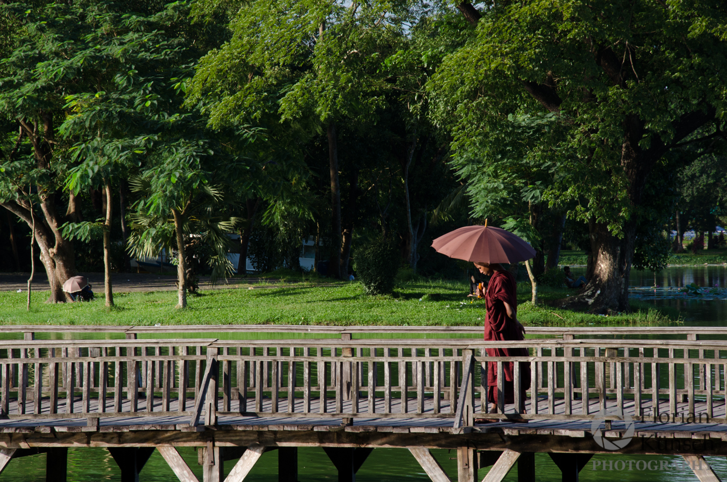 Mönch im Kandawgy-Park auf dem Weg zur Shwedagon Pagode
