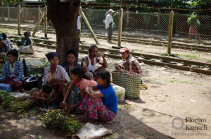 Von Yangon Station nehmen wir den Zug um uns auf eine mehrstündige Reise rund um Yangon zu machen. Die reine Fahrtzeit dieser Rundfahrt dauert etwa drei Stunden, wir steigen aber an irgendeiner Stelle aus und gehen dort etwas essen. Die Zugfahrt empfehlen wir jedem, so eröffnen sich Möglichkeiten, in Kontakt mit den Menschen zu kommen, die ländliche Gegend um Yangon zu sehen, aber auch die unterschiedlichen Lebenswelten zu sehen, sowohl die schönen wie auch die traurigen oder nachdenklichen Momentaufnahmen.
