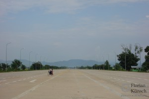 Als wir der Stadt näher kommen, sehen wir schon die Autobahn und zählen teilweise bis zu fünf Spuren. Die einzigen Verkehrsteilnehmer sind Busse, welche die gute und ebene Autobahn gerne nutzen. Zuerst sagt uns niemand, dass wir in Naypyidaw sind und erst als ein Taxifahrer sich erkundet, wo wir hin wollen, erfahren wir, dass wir schon am Ziel sind. Beim Aussteigen sehen wir nur ein paar Taxifahrer und sonst ist nichts los. Ok, es ist 3:00 Uhr in der Nacht, was soll da schon gross los sein? Eigentlich hätten wir schon um Mitternacht ankommen sollen, da der Bus jedoch übervoll war und im Durchgang bereits Plastikstühle aufgestellt wurden, dauerte jeder Stopp etwas länger als geplant 😉