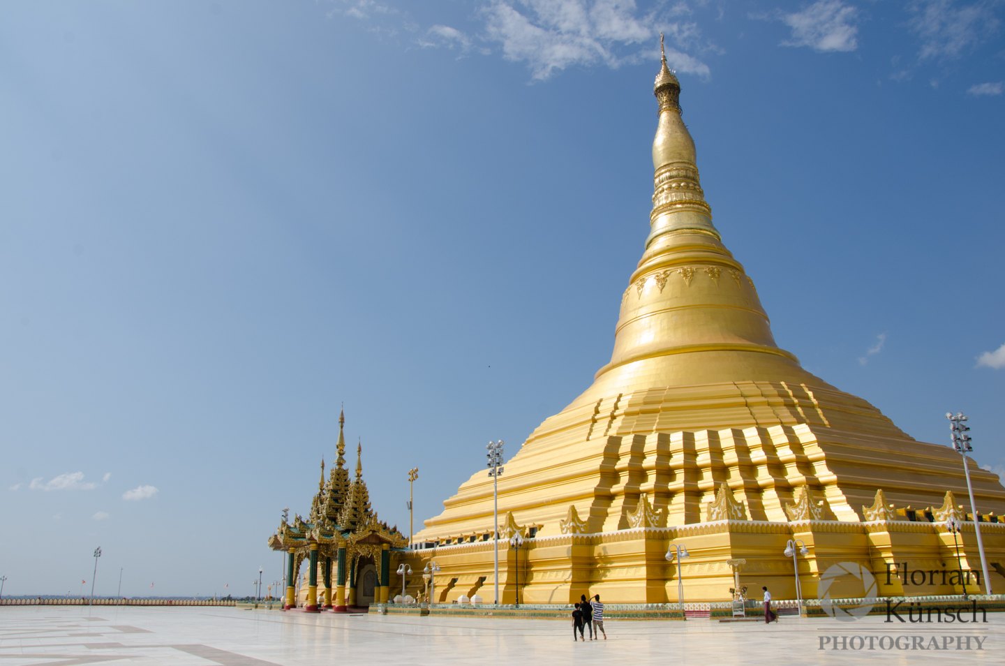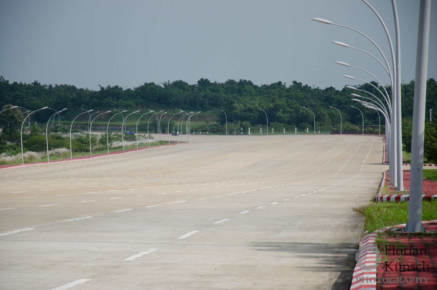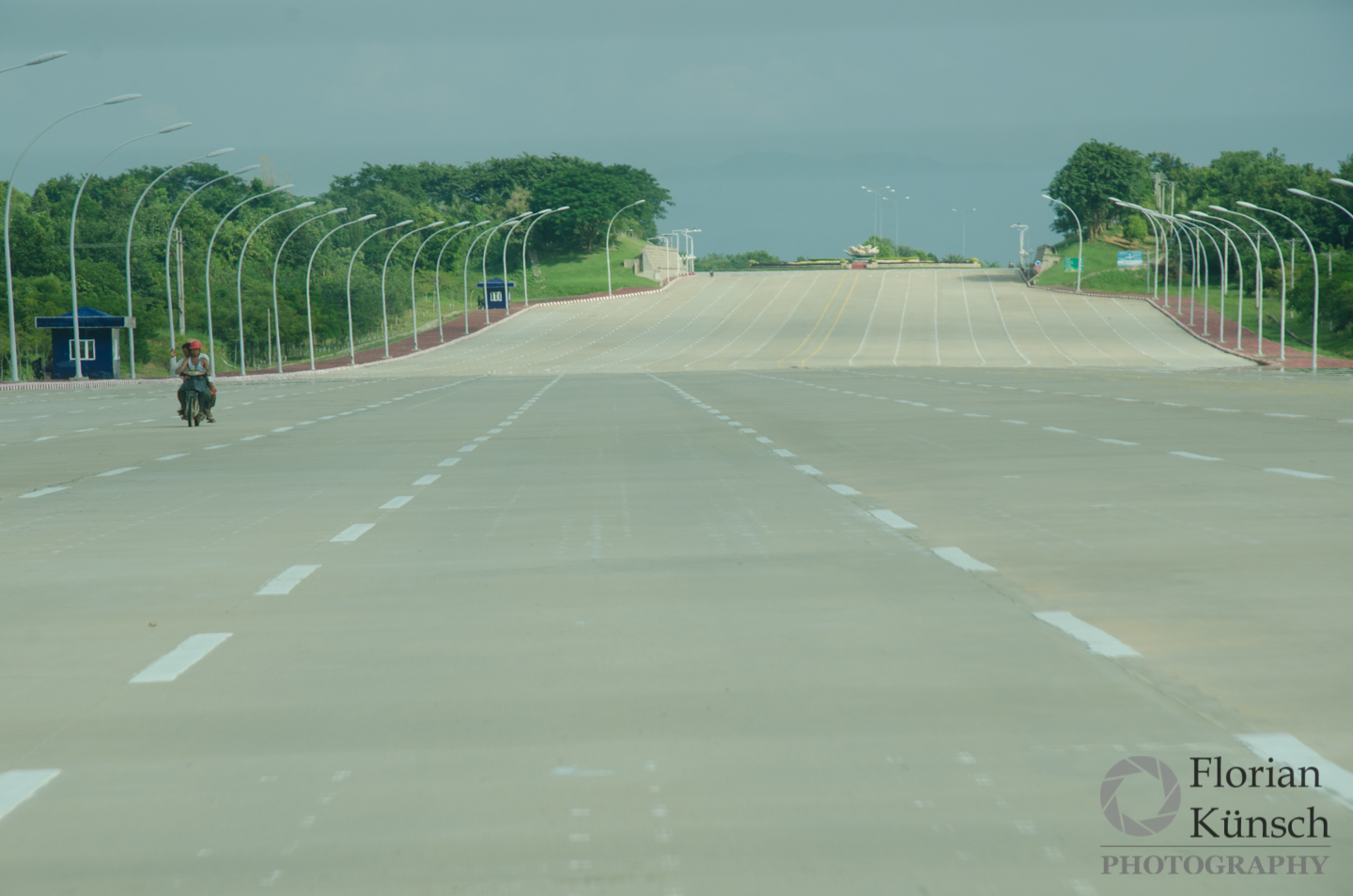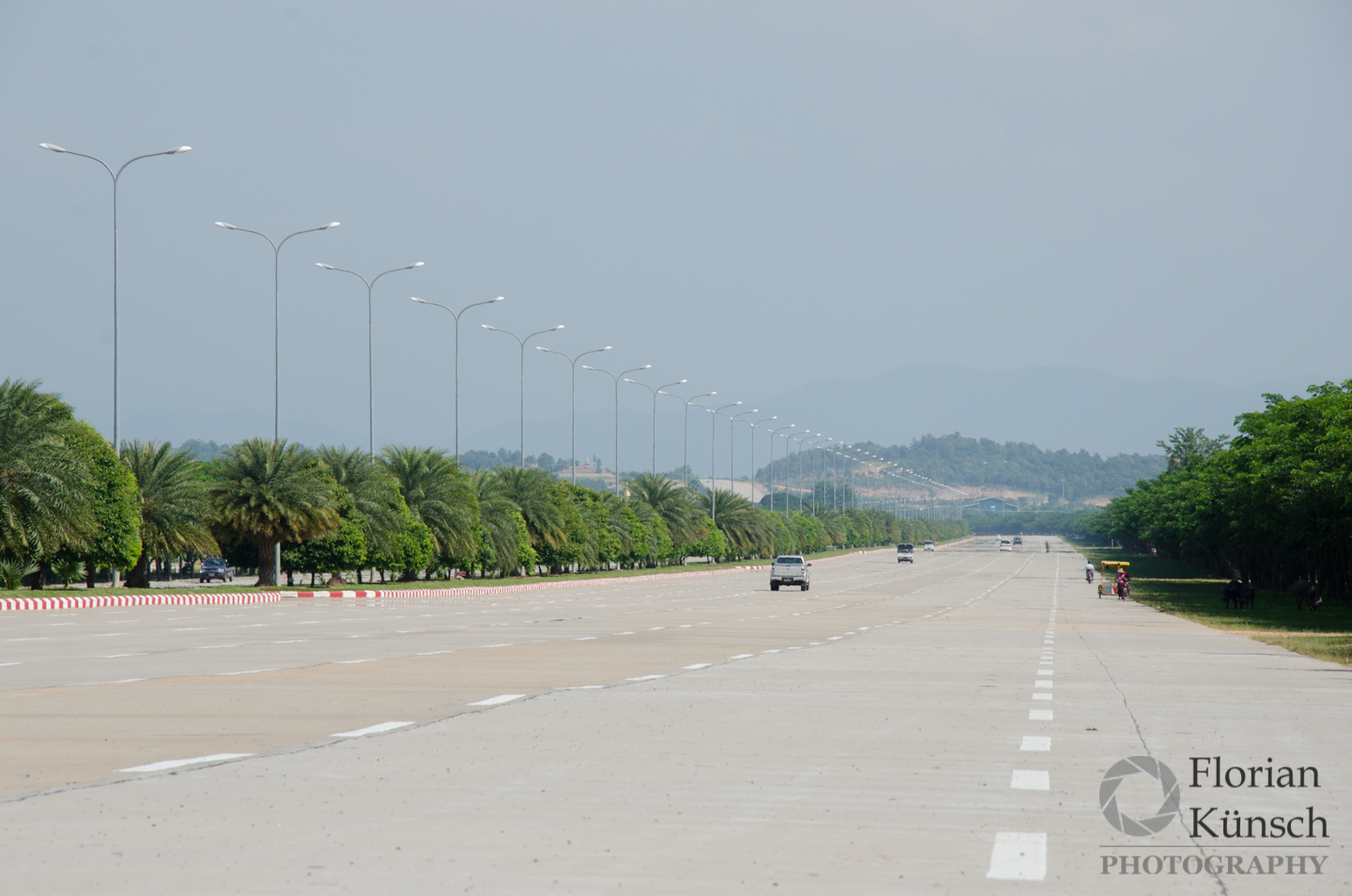Es ist schwer, den Wahnsinn dieser Stadt in Worte zu fassen, denn man kann kaum glauben, in welchem Widerspruch diese Stadt zum Rest des Landes steht. Normalerweise findet man einspurige „Strassen“ mit mehr Löchern als Strasse vor und um sich zu kreuzen, muss man mit einem Rad auf dem nicht asphaltierten Bereich fahren. Hier hat man die freie Auswahl, auf welcher der 10 Spuren man auf der Autobahn fahren will und da fast kein Verkehr ist, muss man sich auch in einem 5 3-spurigen Kreisel keine Sorgen machen. Dabei kann man auf der ganzen Fahrt, die im englischen Stil gehaltenen Rasenflächen mit Palmen und Blumen am Strassenrand betrachten. Überall sieht man Leute arbeiten und alles schön sauber halten. Der Supermarkt (Hypermarket genannt) sieht wie bei uns in der Schweiz aus und alles ist in genügender Menge vorhanden, mit Preisschildern versehen und sauber aufgeräumt. Nur anhand der illegalen Raubkopien, welche im Supermarkt angeboten werden, merkt mann, dass man noch immer in Myanmar ist. Ansonsten wirkt die Stadt verlassen, wo sind das Leben und die Leute? Für wen oder was ist diese Stadt genau?