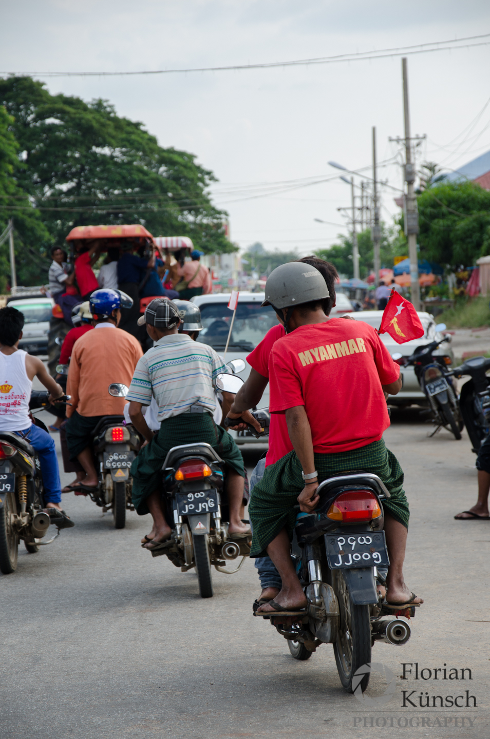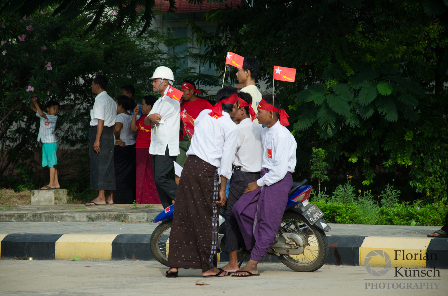 Zu unserem Erstaunen werden wir dabei von niemanden unterbrochen, aber unser Taxifahrer wird langsam etwas nervös und wir fahren weiter um noch einen Happen zu essen. Auf dem Weg dort hin, kommen wir noch an einer Party der NLD vorbei und sind erstaut, dass dies in der Hauptstadt möglich ist.