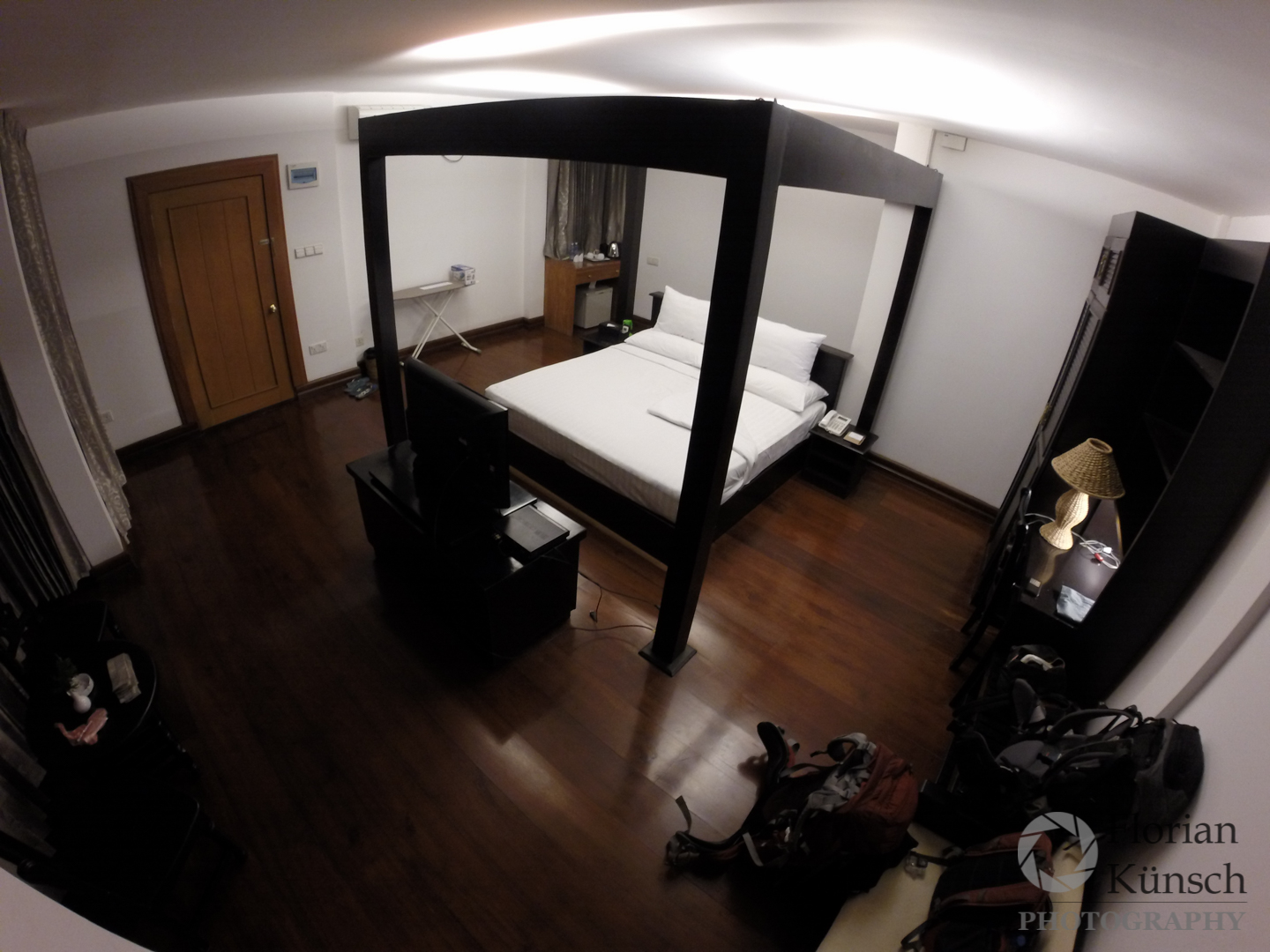 Der Taxifahrer fährt uns zu unserem Hotel und wir staunen nicht schlecht, was sich auf dem Weg für Luxusunterkünfte aneinander reihen. Unser Hotel besitzt, wie die meisten Hotels, die wir sehen, einen riesigen Umschwung und hat sogar einen eigenen Teich. Unser Zimmer für 25 Dollar kann sich echt sehen lassen. Wir haben seit unserer Reise das grösste und luxuriöseste Hotelzimmer.