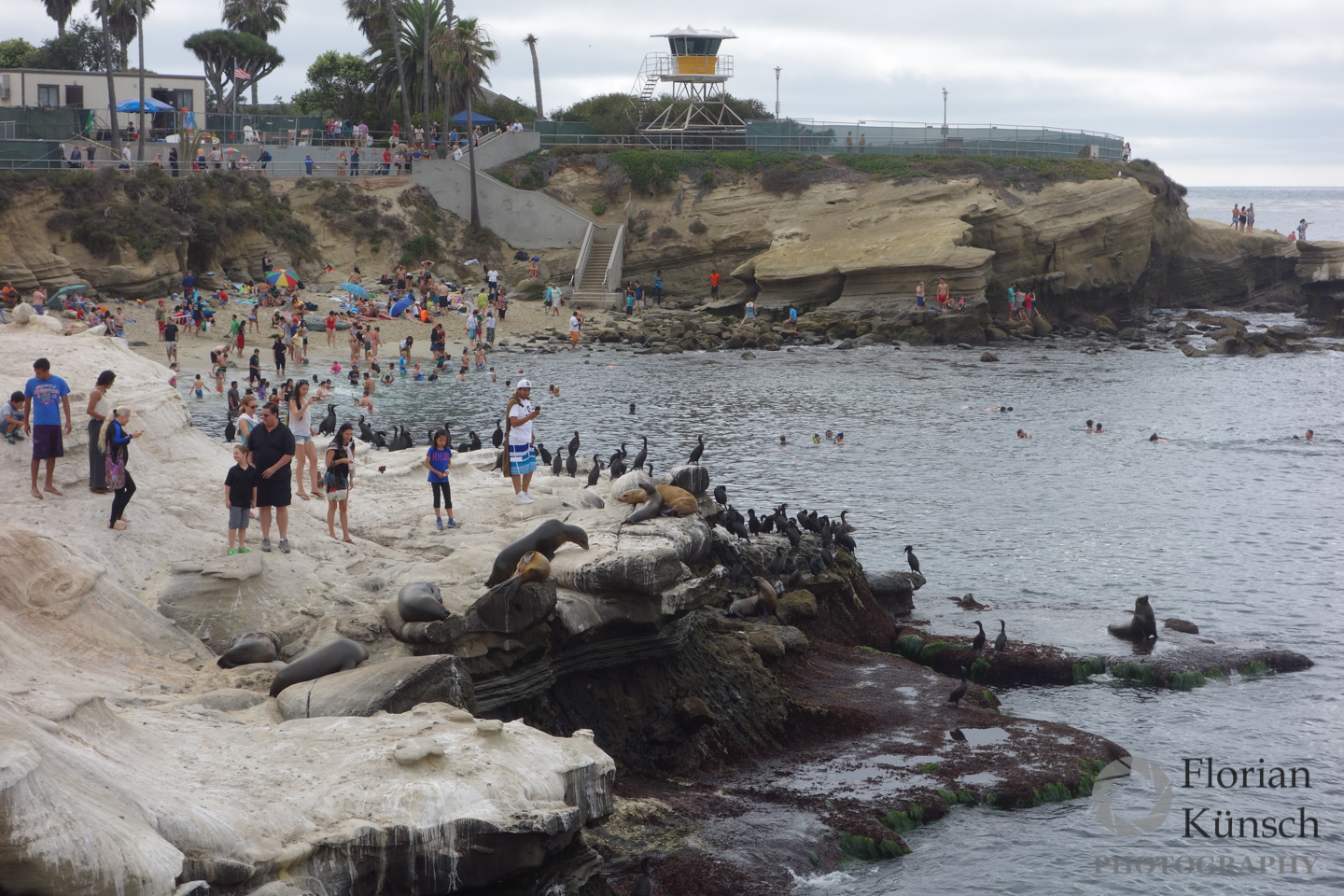 Bis La Jolla haben wir geschickt die Übernachtungsfrage am Nationalfeiertag weggeschoben. Nun müssen wir uns dem stellen, obwohl wir gerne spontan schauen würden. Wie vermutet sind alle Campingplätze um San Diego ausgebucht. Nun ja, schauen wir doch zu erst Mal La Jolla an. Die Seelöwen lenken uns gekonnt von der Übernachtungsfrage ab 🙂